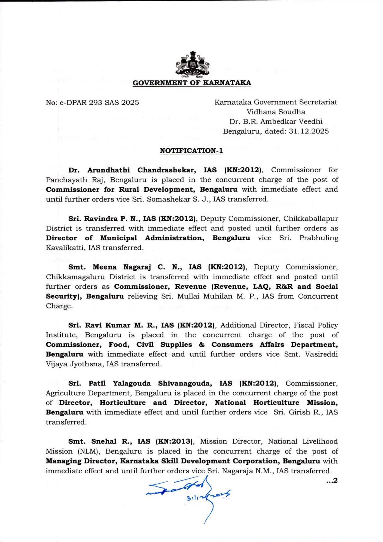 ಹೀಗಿದೆ 12 ಐಎಎಸ್ ಅಧಿಕಾರಿಗಳ ವರ್ಗಾವಣೆ ಪಟ್ಟಿ