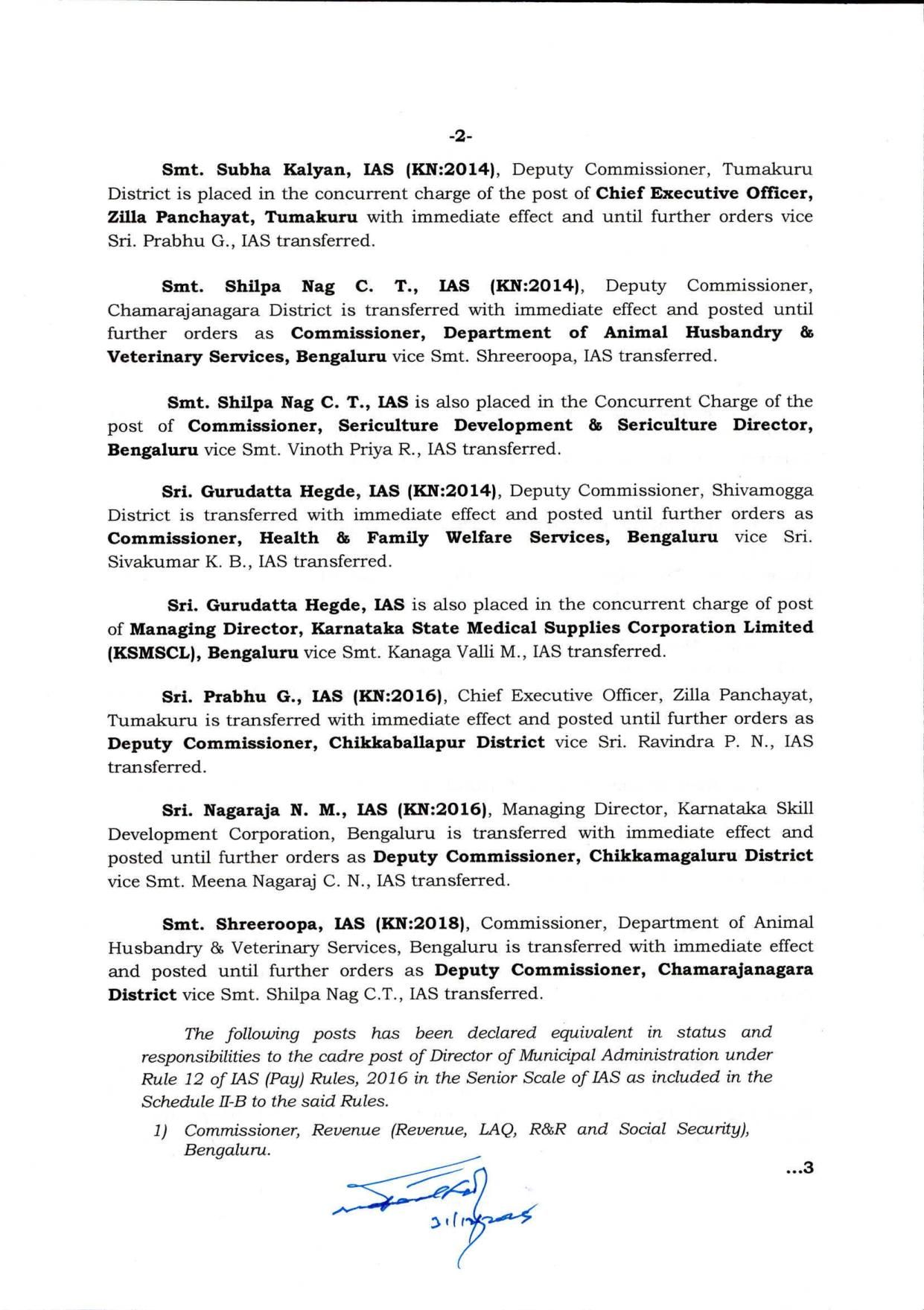 ಶಿವಮೊಗ್ಗ ಡಿಸಿಯಾಗಿದ್ದಂತ ಗುರುದತ್ತ ಹೆಗಡೆ ಅವರನ್ನು ಆರೋಗ್ಯ ಮತ್ತು ಕುಟುಂಬ ಕಲ್ಯಾಣ ಇಲಾಖೆಯ ಆಯುಕ್ತರನ್ನಾಗಿ ವರ್ಗಾವಣೆ ಮಾಡಲಾಗಿದೆ. ಎಸ್ಪಿಯಾಗಿದ್ದಂತ ಮಿಥುನ್ ಕುಮಾರ್ ಅವರನ್ನು ಬೆಂಗಳೂರು ಈಶಾನ್ಯ ವಿಭಾಗದ ಡಿಸಿಪಿಯಾಗಿ ನೇಮಿಸಲಾಗಿದೆ.