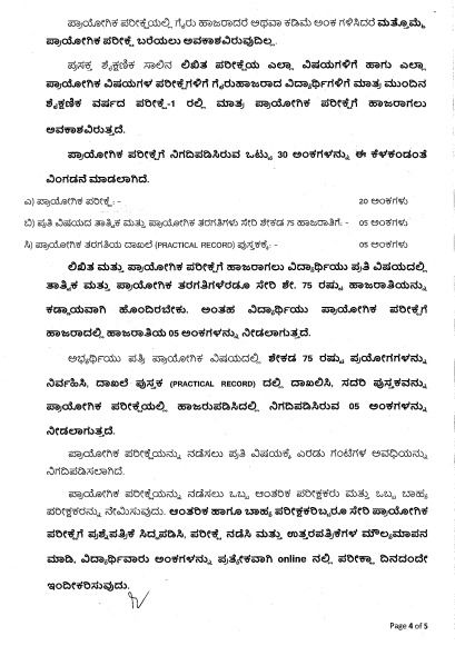 (PHYSICS), 김영진 (CHEMISTRY), ) (BIOLOGY), ವಿಜ್ಞಾನ (COMPUTER SCIENCE), ವಿದ್ಯುನ್ಮಾನಶಾಸ್ತ್ರ (ELECTRONICS) ಮತ್ತು ಗೃಹವಿಜ್ಞಾನ (HOME SCIENCE) ವಿಷಯಗಳಿಗೆ ಶಾಲಾ ಶಿಕ್ಷಣ ಇಲಾಖೆ (ಪದವಿ ಪೂರ್ವ) ಯು ಪ್ರಕಟಿಸಿರುವ ಪಠ್ಯವಸ್ತುವನ್ನು ಆಧರಿಸಿ ಉಲ್ಲೇಖ (2) ರಂತೆ 70 ಅಂಕಗಳಿಗೆ ಲಿಖಿತ ಪರೀಕ್ಷೆಯನ್ನು ಹಾಗೂ 30 ಅಂಕಗಳಿಗೆ ಪ್ರಾಯೋಗಿಕ ಪರೀಕ್ಷೆಯನ್ನು ನಿಗದಿಪಡಿಸಲಾಗಿದೆ.