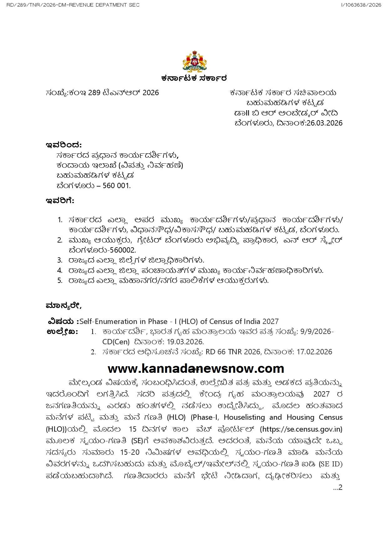 ಸರ್ಕಾರದ ಆದೇಶ: “ರಾಜ್ಯದ ಎಲ್ಲಾ ಇಲಾಖೆಗಳು, ನಿಗಮ ಮತ್ತು ಮಂಡಳಿಗಳ ಅಧಿಕಾರಿಗಳು ಸಾರ್ವಜನಿಕರಲ್ಲಿ ಈ ಬಗ್ಗೆ ಅರಿವು ಮೂಡಿಸಬೇಕು. ನಾಗರಿಕರು ಸಕ್ರಿಯವಾಗಿ ಭಾಗವಹಿಸಿ 2027ರ ಜನಗಣತಿಯನ್ನು ಯಶಸ್ವಿಗೊಳಿಸಬೇಕು,” ಎಂದು ಕಂದಾಯ ಇಲಾಖೆಯ ಅಧೀನ ಕಾರ್ಯದರ್ಶಿಗಳಾದ ನರಸಿಂಹಮೂರ್ತಿ ಜಿ.ಕೆ. ಅವರು ಪ್ರಕಟಣೆಯಲ್ಲಿ ತಿಳಿಸಿದ್ದಾರೆ.