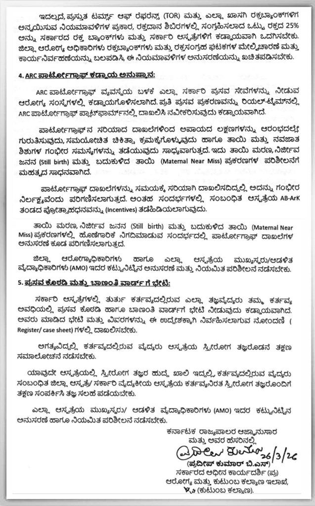 ಬೆಂಗಳೂರು: ರಾಜ್ಯದ ಸರ್ಕಾರಿ ಆಸ್ಪತ್ರೆಗಳಲ್ಲಿ ಹೆರಿಗೆ ಮತ್ತು ಗರ್ಭಿಣಿಯರ ಆರೈಕೆ ಸೇವೆಯನ್ನು ಮತ್ತಷ್ಟು ಬಲಪಡಿಸಲು ಆರೋಗ್ಯ ಮತ್ತು ಕುಟುಂಬ ಕಲ್ಯಾಣ ಇಲಾಖೆ ಕಟ್ಟುನಿಟ್ಟಿನ ಆದೇಶ ಹೊರಡಿಸಿದೆ. ತಾಯಿ ಮತ್ತು ಶಿಶು ಮರಣ ಪ್ರಮಾಣವನ್ನು ತಗ್ಗಿಸುವ ನಿಟ್ಟಿನಲ್ಲಿ ಸರ್ಕಾರ 5 ಪ್ರಮುಖ ಮಾರ್ಗಸೂಚಿಗಳನ್ನು ಜಾರಿಗೆ ತಂದಿದೆ.