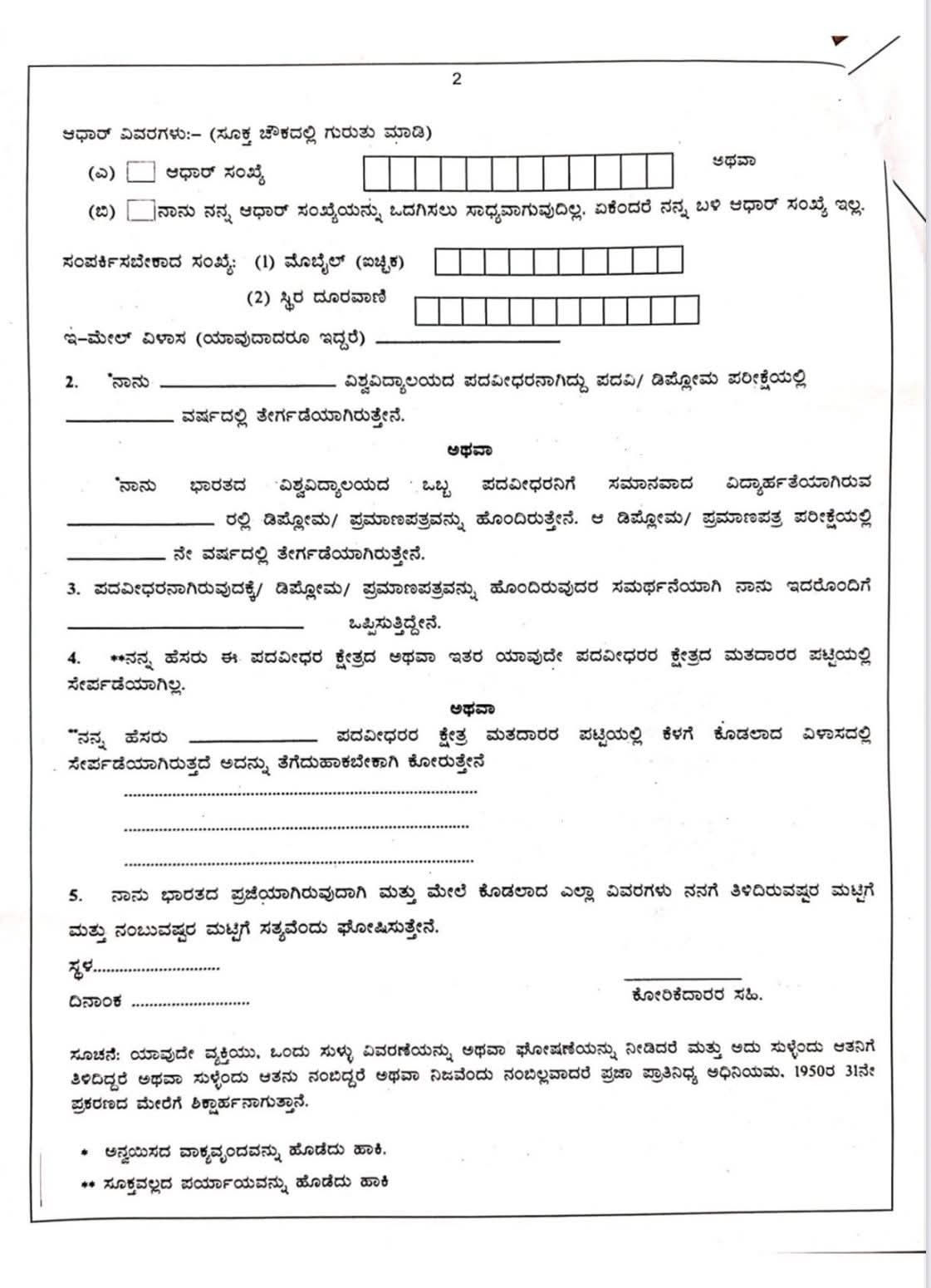 5-ಒಂದು ಪಾಸ್ಪೋರ್ಟ್ ಸೈಜ್ ಫೋಟೋವನ್ನು ಅರ್ಜಿ ಜೊತೆ ಲಗತ್ತಿಸಬೇಕು