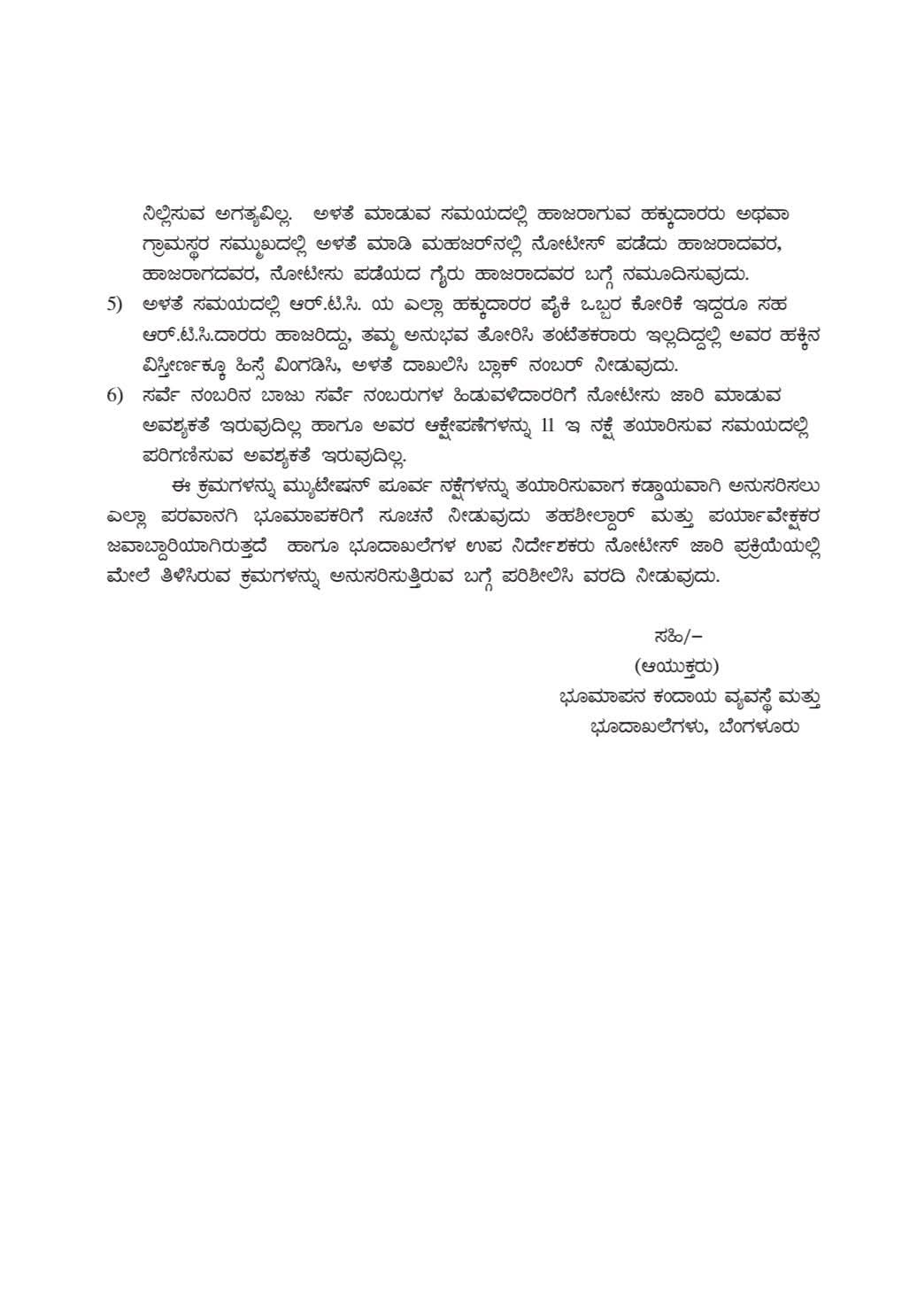 1) ಆರ್ .ಟಿ.ಸಿ.ಯ ಕಾಲಂ ನಂ 9 ರಲ್ಲಿ ನಮೂದಾಗಿರುವ ಎಲ್ಲಾ ಹಕ್ಕುದಾರರಿಗೂ ಅವರ ಹಕ್ಕುಗಳಿಗೆ ಅನುಸಾರವಾಗಿ ಅಳತೆ ಮಾಡಬೇಕಾಗಿದ್ದು, ಎಲ್ಲರಿಗೂ ನೋಟೀಸ್ ಜಾರಿ ಮಾಡುವುದು.