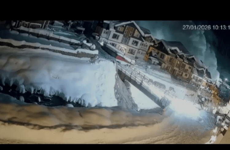 ಹಿಮಪಾತವು ಮುಂದೆ ಚಲಿಸಿ ಅದರ ಹಾದಿಯಲ್ಲಿರುವ ಕಟ್ಟಡಗಳನ್ನು ಆವರಿಸಿದ ಕ್ಷಣವನ್ನು ಸಿಸಿಟಿವಿ ದೃಶ್ಯಾವಳಿಗಳು ರೆಕಾರ್ಡ್ ಮಾಡಿವೆ.