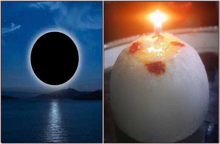ಅಂತಹ ಚಿತ್ರವಿಲ್ಲದಿದ್ದರೆ, ಲಿವಿಂಗ್ ರೂಮಿನಲ್ಲಿ ಸಣ್ಣ ಹಲಗೆಯನ್ನು ಹಾಕಿ ಮತ್ತು ಅದರ ಮೇಲೆ ಈ ದೀಪವನ್ನು ದಕ್ಷಿಣಕ್ಕೆ ಹಚ್ಚಿಯಿರಿ. ಈ ದೀಪವನ್ನು ಅಮಾವಾಸ್ಯೆಯಂದು ಸಂಜೆ 5:30 ರಿಂದ 7:30 ರವರೆಗೆ ಬೆಳಗಿಸಬೇಕು. ಈ ದೀಪವು ಕನಿಷ್ಠ ಅರ್ಧ ಘಂಟೆಯವರೆಗೆ ಉರಿಯಬೇಕು. ಮರುದಿನ ಬೆಳಿಗ್ಗೆ, ಈ ಹಿಟ್ಟಿನ ದೀಪವನ್ನು ನೀರಿನಲ್ಲಿ ಕರಗಿಸಿ ಮತ್ತು ಅಂಟಿಕೊಳ್ಳದ ಸ್ಥಳದಲ್ಲಿ ಸುರಿಯಿರಿ.