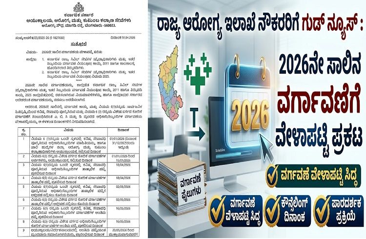 ಬೆಂಗಳೂರು: ರಾಜ್ಯ ಸರ್ಕಾರದ ಆರೋಗ್ಯ ಮತ್ತು ಕುಟುಂಬ ಕಲ್ಯಾಣ ಇಲಾಖೆಯ ಅಡಿಯಲ್ಲಿ ಬರುವ ವೈದ್ಯಾಧಿಕಾರಿಗಳು ಹಾಗೂ ಸಿಬ್ಬಂದಿಗಳ 2026ನೇ ಸಾಲಿನ…