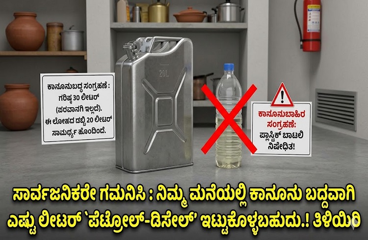 ಭಾರತೀಯ ಪೆಟ್ರೋಲಿಯಂ ಕಾಯ್ದೆ 1934 ಮತ್ತು ಪೆಟ್ರೋಲಿಯಂ ನಿಯಮಗಳು 2002ರ ಅನ್ವಯ, ಒಬ್ಬ ಸಾಮಾನ್ಯ ನಾಗರಿಕ ತನ್ನ ಮನೆಯಲ್ಲಿ ಯಾವುದೇ ವಿಶೇಷ ಪರವಾನಗಿ (License) ಇಲ್ಲದೆ ಗರಿಷ್ಠ 30 ಲೀಟರ್ ವರೆಗೆ ಮಾತ್ರ ಪೆಟ್ರೋಲ್ ಸಂಗ್ರಹಿಸಬಹುದು. ಆದರೆ ಈ 30 ಲೀಟರ್ ಸಂಗ್ರಹಣೆಗೂ ಕೆಲವು ಕಠಿಣ ಷರತ್ತುಗಳಿವೆ.