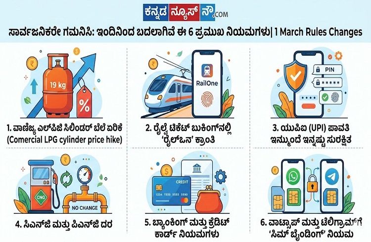 ಸಾರ್ವಜನಿಕರೇ ಗಮನಿಸಿ : ಇಂದಿನಿಂದ ಬದಲಾಗಿವೆ ಈ 6 ಪ್ರಮುಖ ನಿಯಮಗಳು | 1 March Rules Changes