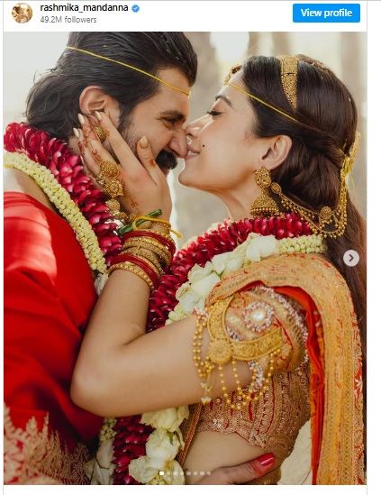 ರಶ್ಮಿಕಾ ಮತ್ತು ವಿಜಯ್ ತಮ್ಮ ಅಧಿಕೃತ ಖಾತೆಗಳಲ್ಲಿ ತಮ್ಮ ಮದುವೆಯ ಮೊದಲ ಫೋಟೋಗಳನ್ನು ಹಂಚಿಕೊಂಡಿದ್ದಾರೆ. ರಶ್ಮಿಕಾ ವಿವಾಹದ ಫೋಟೋಗಳ ಸರಣಿಯನ್ನು ಪೋಸ್ಟ್ ಮಾಡಿ, ವಿಜಯ್ ಅವರನ್ನು ತಮ್ಮ ಅನುಯಾಯಿಗಳಿಗೆ ಹೃದಯಸ್ಪರ್ಶಿ ಟಿಪ್ಪಣಿಯೊಂದಿಗೆ ಪರಿಚಯಿಸಿದರು. “ನಮಸ್ಕಾರ ನನ್ನ ಪ್ರಿಯರೇ, ಈಗ ನಿಮಗೆ ‘ನನ್ನ ಗಂಡ’ ಎಂದು ಪರಿಚಯಿಸುತ್ತಿದ್ದೇನೆ! ಶ್ರೀ ವಿಜಯ್ ದೇವರಕೊಂಡ!! ನಿಜವಾದ ಪ್ರೀತಿ ಹೇಗಿರುತ್ತದೆ ಎಂದು ನನಗೆ ಕಲಿಸಿದ ವ್ಯಕ್ತಿ, ಶಾಂತಿಯಿಂದ ಇರುವುದು ಹೇಗಿರುತ್ತದೆ ಎಂದು ನನಗೆ ತೋರಿಸಿದ ವ್ಯಕ್ತಿ,” ಎಂದು ಅವರು ಬರೆದಿದ್ದಾರೆ.
