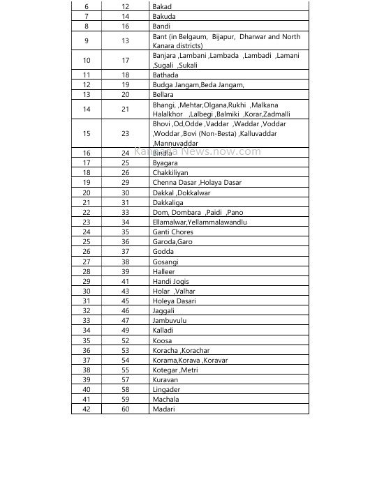2) ಆಯೋಗದ ವರದಿಯಲ್ಲಿನ ಪ್ರವರ್ಗ- ಇ ರಲ್ಲಿನ ಆದಿ ಕರ್ನಾಟಕ, ಆದಿ ದ್ರಾವಿಡ ಮತ್ತು ತಮ್ಮ ಮೂಲ ಜಾತಿಯನ್ನು ತಿಳಿಸದೇ ಅನುಬಂಧಗಳಲ್ಲಿರುವ ಪ್ರವರ್ಗ-ಎ ಅಥವಾ ಆದಿ ಆಂಧ್ರ ಈ 3 ಸಮುದಾಯಗಳು ಇರುವುದರಿಂದ ಸದರಿ 3 ಜಾತಿಗಳು ಪ್ರವರ್ಗ-ಬಿ ಗಳಲ್ಲಿ ಮೀಸಲಾತಿ ಸೌಲಭ್ಯವನ್ನು ಪಡೆಯಬಹುದು.