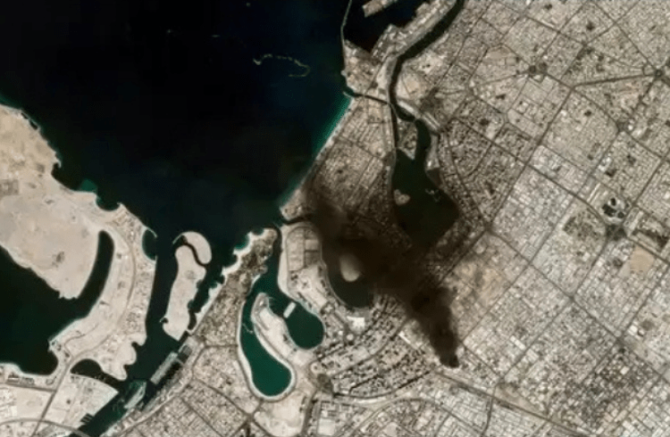 ಸ್ಯಾಟಲೈಟ್ ಸಾಕ್ಷ್ಯ: ಜಾಗತಿಕ ಬಾಹ್ಯಾಕಾಶ ಸಂಸ್ಥೆಗಳು ಬಿಡುಗಡೆ ಮಾಡಿರುವ ಚಿತ್ರಗಳಲ್ಲಿ, ದುಬೈನ ಪ್ರಸಿದ್ಧ ಸ್ಕೈಲೈನ್ ಮತ್ತು ಬುರ್ಜ್ ಖಲೀಫಾ ಸುತ್ತಮುತ್ತಲಿನ ಪ್ರದೇಶಗಳು ಹೊಗೆಯಿಂದ ಮುಚ್ಚಿಹೋಗಿರುವುದು ಸ್ಪಷ್ಟವಾಗಿ ಕಾಣಿಸುತ್ತಿದೆ. ಇದು ದಾಳಿಯ ತೀವ್ರತೆಯನ್ನು ಸಾರುತ್ತಿದೆ.