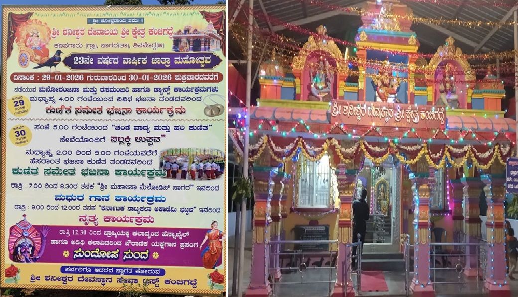 ಈ ಕುರಿತಂತೆ ಮಾಹಿತಿ ಹಂಚಿಕೊಂಡಿರುವಂತ ಶ್ರೀ ಕ್ಷೇತ್ರ ಕಂಚಿಗದ್ದೆಯ ಶನೀಶ್ವರ ದೇವಾಲಯದ ಧರ್ಮದರ್ಶಿಗಳಾದಂತ ಬಂಗಾರಪ್ಪ ಅವರು, ಜನವರಿ.29ರಂದು ಬೆಳಗ್ಗೆ 8 ಗಂಟೆಯಿಂದ ಶ್ರೀ ದೇವರಿಗೆ ಫಲಪ್ರಾರ್ಥನೆ, ಗಣಪತಿ ಪೂಜೆ, ಪುಣ್ಯಾಹ, ಪಂಚಗವ್ಯ ಹೋಮ, ದೇವನಾದಿ ಸೇರಿದಂತೆ ವಿವಿಧ ಪೂಜಾ ಕೈಂಕರ್ಯಗಳು ನೆರವೇರಲಿದೆ. ಮಧ್ಯಾಹ್ನ ಅನ್ನ ಸಂತರ್ಪಣೆ, ಆ ಬಳಿಕ ಭಜನಾ ಕಾರ್ಯಕ್ರಮ ಆಯೋಜಿಸಲಾಗಿದೆ. ಸಂಜೆ ಯಾಗಶಾಲಾ ಪ್ರವೇಶ, ಮಂಡಲಾರಾಧನೆ, ಕಲಶಾ ಸ್ಥಾಪನಾ ಪೂಜಾ, ಮಂಗಳಾರತಿ, ತೀರ್ಥಪ್ರಸಾದ ವಿತರಣೆ ಹಾಗೂ ಅನ್ನಸಂತರ್ಪಣೆ ನೆರವೇರಲಿದೆ ಎಂದಿದ್ದಾರೆ.