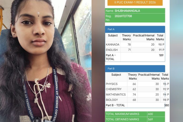 ಶುಭಮಂಗಳ ಅವರು ಒಟ್ಟು 600 ಅಂಕಗಳಿಗೆ 569 ಅಂಕಗಳನ್ನು (94.83%) ಪಡೆಯುವ ಮೂಲಕ ಕಾಲೇಜಿಗೆ ಕೀರ್ತಿ ತಂದಿದ್ದಾರೆ. ವಿಷಯವಾರು ಅಂಕಗಳು ಈ ಕೆಳಗಿನಂತಿವೆ: