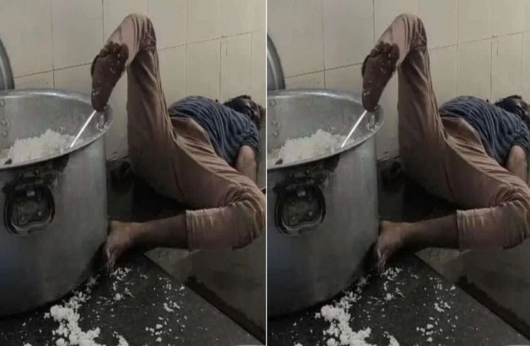 ಹೈದರಾಬಾದ್: ತೆಲಂಗಾಣದ ಸಂಗರೆಡ್ಡಿಯಲ್ಲಿರುವ ಹಾಸ್ಟೆಲ್ ನಲ್ಲಿ ನಿಯೋಜಿತರಾಗಿದ್ದ ಪಾನಮತ್ತ ಕಾವಲುಗಾರನೊಬ್ಬ ವಿದ್ಯಾರ್ಥಿಗಳಿಗೆ ಸಿದ್ಧಪಡಿಸಿದ ಅನ್ನದಲ್ಲಿ ಕಾಲು ಇಟ್ಟುಕೊಂಡು ಮಲಗಿರುವುದು ಕಂಡುಬಂದಿದೆ.