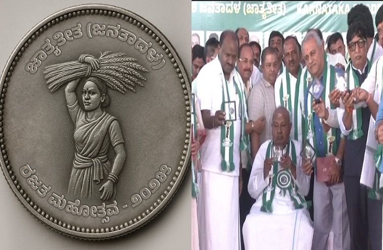 ಬೆಂಗಳೂರು: ಜೆಡಿಎಸ್ ಪಕ್ಷಕ್ಕೆ ಸ್ಥಾಪನೆಯಾಗಿ 25 ವರ್ಷಗಳು ತುಂಬಿವೆ. ಈ ಹಿನ್ನಲೆಯಲ್ಲಿ ರಜತ ಮಹೋತ್ಸವವನ್ನು ಆಚರಣೆ ಮಾಡಲಾಯಿತು. ಬೃಹತ್ ಸಮಾವೇಶದಲ್ಲಿ ಜೆಡಿಎಸ್ ಪಕ್ಷಕ್ಕೆ ಬೆಳ್ಳಿ ಹಬ್ಬದ ಸಂಭ್ರಮದ ಕಾರಣದಿಂದಾಗಿ ಬೆಳ್ಳಿ ನಾಣ್ಯವನ್ನು ಕೂಡ ಬಿಡುಗಡೆ ಮಾಡಲಾಯಿತು.