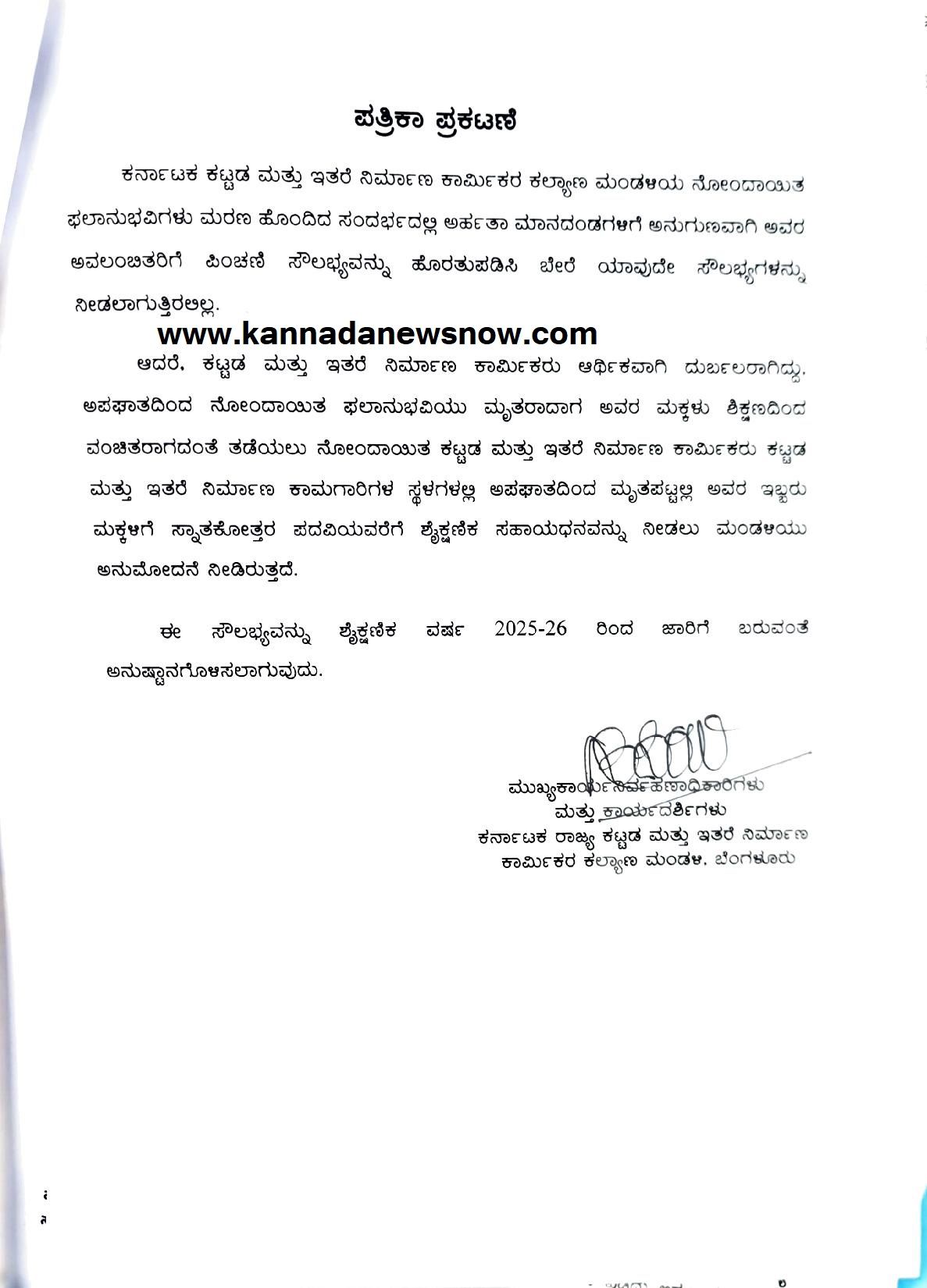 ಈ ಸೌಲಭ್ಯವು 2025-26 ನೇ ಶೈಕ್ಷಣಿಕ ವರ್ಷದಿಂದ ಜಾರಿಗೆ ಬರುವಂತೆ ಅನುಷ್ಠಾನಗೊಳಿಸಲಾಗುತ್ತಿದೆ. ಆ ಮೂಲಕ ರಾಜ್ಯ ಸರ್ಕಾರವು ಕಟ್ಟಡ ಮತ್ತು ಇತರೆ ನಿರ್ಮಾಣ ಕಾರ್ಮಿಕರಿಗೆ ಗುಡ್ ನ್ಯೂಸ್ ನೀಡಲಾಗಿದೆ.