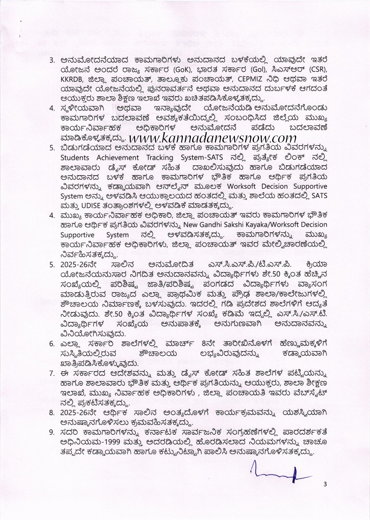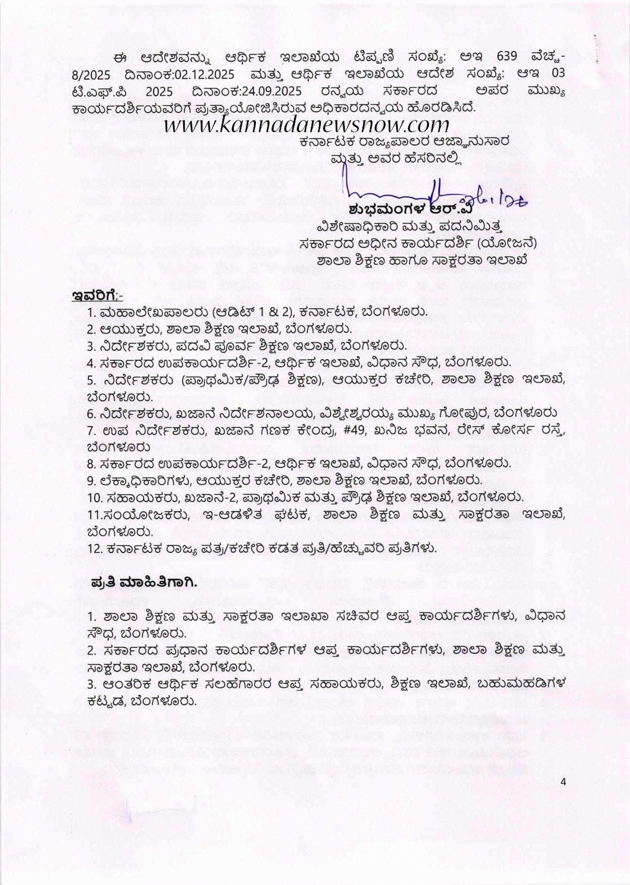 ಈ ಕುರಿತಂತೆ ಶಾಲಾ ಶಿಕ್ಷಣ ಮತ್ತು ಸಾಕ್ಷರತಾ ಇಲಾಖೆಯ ವಿಶೇಷಾಧಿಕಾರಿ ಹಾಗೂ ಪದನಮಿತ್ತ ಸರ್ಕಾರದ ಅಧೀನ ಕಾರ್ಯದರ್ಶಿ ಶುಭಮಂಗಳ ಆರ್.ವಿ ನಡವಳಿಯನ್ನು ಹೊರಡಿಸಿದ್ದಾರೆ. ಅದರಲ್ಲಿ  ಮುಖ್ಯಮಂತ್ರಿಯವರು ವಿಧಾನ ಮಂಡಲದಲ್ಲಿ ಮಂಡಿಸಿದ 2025-26ನೇ ಸಾಲಿನ ಆಯವ್ಯಯ ಭಾಷಣದಲ್ಲಿ ಶಾಲಾ ಶಿಕ್ಷಣ ಹಾಗೂ ಸಾಕ್ಷರತಾ ಇಲಾಖೆಗೆ ಸಂಬಂಧಿಸಿದಂತೆ ಕಂಡಿಕೆ-116 ರಲ್ಲಿ ಈ ಕೆಳಕಂಡಂತೆ ಘೋಷಿಸಿರುತ್ತಾರೆ ಎಂದಿದ್ದಾರೆ.