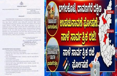 BREAKING : ಬಾಗಲಕೋಟೆ, ದಾವಣಗೆರೆ ದಕ್ಷಿಣ ವಿಧಾನಸಭಾ ಕ್ಷೇತ್ರಗಳಿಗೆ ಉಪಚುನಾವಣೆ : ನಾಳೆ ಸಾರ್ವತ್ರಿಕ ರಜೆ ಘೋಷಣೆ08/04/2026 5:05 AM