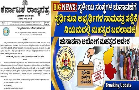 BIG NEWS : ಸ್ಥಳೀಯ ಸಂಸ್ಥೆಗಳ ಚುನಾವಣೆಗೆ ಸ್ಪರ್ಧಿಸುವ ಅಭ್ಯರ್ಥಿಗಳ ನಾಮಪತ್ರ ಸಲ್ಲಿಕೆ ನಿಯಮದಲ್ಲಿ ಬದಲಾವಣೆ : ಚುನಾವಣಾ ಆಯೋಗ ಮಹತ್ವದ ಆದೇಶ23/04/2026 7:36 AM