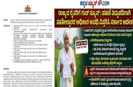 ರಾಜ್ಯದ ರೈತರಿಗೆ ಗುಡ್ ನ್ಯೂಸ್ : ಪಹಣಿ ತಿದ್ದುಪಡಿಗಾಗಿ ತಹಶೀಲ್ದಾರರ ಅಧಿಕಾರ ಅವಧಿ ವಿಸ್ತರಿಸಿ ಸರ್ಕಾರ ಆದೇಶ25/03/2026 5:15 AM