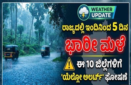 Weather update : ರಾಜ್ಯದಲ್ಲಿ ಇಂದಿನಿಂದ 5 ದಿನ ಭಾರೀ ಮಳೆ : ಈ 10 ಜಿಲ್ಲೆಗಳಿಗೆ ‘ಯೆಲ್ಲೋ ಅಲರ್ಟ್’ ಘೋಷಣೆ02/04/2026 9:35 AM