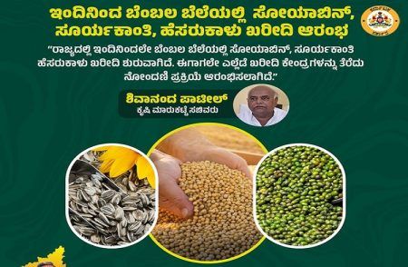 Good News: ಇಂದಿನಿಂದ ರಾಜ್ಯದಲ್ಲಿ ಬೆಂಬಲ ಬೆಲೆಯಲ್ಲಿ ಸೋಯಾಬಿನ್, ಸೂರ್ಯಕಾಂತಿ, ಹೆಸರುಕಾಳು, ಖರೀದಿ ಆರಂಭ28/10/2025 7:17 PM