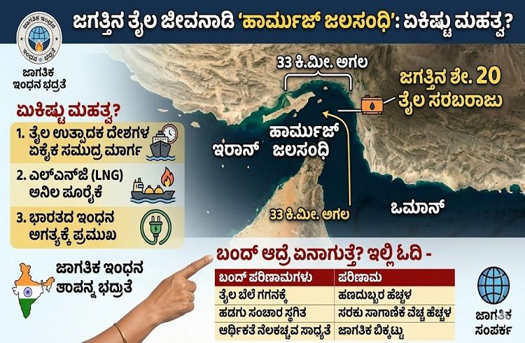 ಮಧ್ಯಪ್ರಾಚ್ಯದ ಭೌಗೋಳಿಕ ರಾಜಕೀಯದಲ್ಲಿ ‘ಹಾರ್ಮುಜ್ ಜಲಸಂಧಿ’ (Strait of Hormuz) ಎಂಬ ಹೆಸರು ಪದೇ ಪದೇ ಕೇಳಿಬರುತ್ತಿರುತ್ತದೆ. ಇರಾನ್ ಮತ್ತು ಒಮಾನ್ ನಡುವೆ ಇರುವ ಈ ಕಿರಿದಾದ ಸಮುದ್ರ ಮಾರ್ಗವು ಇಡೀ ವಿಶ್ವದ ಆರ್ಥಿಕತೆಯ ಮೇಲೆ ಗಾಢವಾದ ಪ್ರಭಾವ ಬೀರುವ ಶಕ್ತಿ ಹೊಂದಿದೆ. ಇದನ್ನು ಜಗತ್ತಿನ “ತೈಲ ಜೀವನಾಡಿ” ಎಂದೇ ಕರೆಯಲಾಗುತ್ತದೆ.