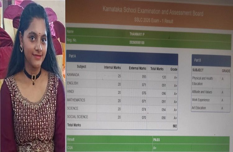 SSLC ಪರೀಕ್ಷೆಯಲ್ಲಿ ಮಿಂಚಿದ ಸೊರಬದ ಉಳವಿಯ ಪ್ರತಿಭೆ: ವಕೀಲರಾದ ಪ್ರಶಾಂತ್ ಪುತ್ರಿ ತನ್ಮಯಿಗೆ 582 ಅಂಕ!