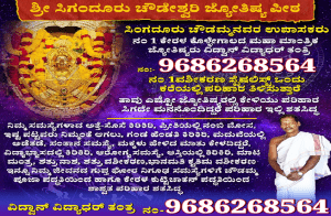 ಪ್ರಧಾನ ಗುರುಗಳು ಹಾಗೂ ದೈವಿಕ ಅರ್ಚಕ ಮನೆತನದವರು ವಿದ್ವಾನ್ ವಿದ್ಯಾಧರ್ ತಂತ್ರಿ ಜ್ಯೋತಿಷ್ಯರ ಮೊಬೈಲ್ ಸಂಖ್ಯೆ 9686268564 ಇವರು ಚೌಡಿ ಉಪಾಸನಾ ಮತ್ತು ಕೇರಳದ ವಿಶಿಷ್ಟ ಅನುಷ್ಠಾನ ಪೂಜೆಗಳಿಂದ ತಮ್ಮಲ್ಲಿ ಉಲ್ಬಣಿಸುವ ಸಕಲ ಸಮಸ್ಯೆಗಳಿಗೆ ಪರಿಹಾರ ಮತ್ತು ಮಾರ್ಗದರ್ಶನ ತಿಳಿಸಿಕೊಡುತ್ತಾರೆ. ನಿಮ್ಮ ಧ್ವನಿಯ ಮೂಲಕ ನಿಮ್ಮ ಸಮಸ್ಯೆಗಳನ್ನು ಅರಿತು ಅಥವಾ ಜನ್ಮಜಾತಕ ಫೋಟೋ ಹಸ್ತಸಾಮುದ್ರಿಕ ನೋಡಿ ಭವಿಷ್ಯ ಜಾತಕ ನಿರೂಪಣೆ ಮಾಡುತ್ತಾರೆ. ನಿಮ್ಮ ಸಮಸ್ಯೆಗಳಾದ ಆರೋಗ್ಯ, ಸಂತಾನ, ಸಾಲದ ಬಾಧೆ, ಪ್ರೀತಿಯಲ್ಲಿ ನಂಬಿ ಮೋಸ, ವಿವಾಹ, ಉದ್ಯೋಗದಲ್ಲಿ ತೊಂದರೆ, ಸತಿ ಪತಿ ಕಲಹ, ಪ್ರೇಮ ವಿಚಾರ, ಅತ್ತೆ-ಸೊಸೆ ಕಲಹ, ದೃಷ್ಟಿ ದೋಷ, ಮನೆಯಲ್ಲಿ ದಟ್ಟದರಿದ್ರ, ಗಂಡನ ಪರ ಸ್ತ್ರೀ ಸಹವಾಸ ಬಿಡಿಸಲು, ವ್ಯಾಪಾರದಲ್ಲಿ ತೊಂದರೆ, ಕುಟುಂಬದ ಕಷ್ಟ, ಹಣಕಾಸಿನ ಅಡಚಣೆ, ಪ್ರೇಮ ವೈಫಲ್ಯ ಹಾಗೂ ಸ್ತ್ರೀ ಪುರುಷ ವಶೀಕರಣದಂತಹ ಸಮಸ್ಯೆಗಳಿಗೆ ಇನ್ನೂ ಅನೇಕ ಗುಪ್ತ ಸಮಸ್ಯೆಗಳಿಗೆ ತಾಂಬೂಲ ಪ್ರಶ್ನೆ, ಅಷ್ಟಮಂಡಲ ಪ್ರಶ್ನೆ, ಕವಡೆ ಪ್ರಶ್ನೆ ಹಾಕಿ ನಿಮ್ಮ ಕಷ್ಟಕಾರ್ಪಣ್ಯಗಳಿಗೆ ಶಾಶ್ವತ ಪರಿಹಾರ ಮತ್ತು ಉತ್ತಮ ಸಲಹೆ ಪಡೆದುಕೊಳ್ಳಲು ಈಗಲೇ ಕರೆ ಮಾಡಿ 9686268564