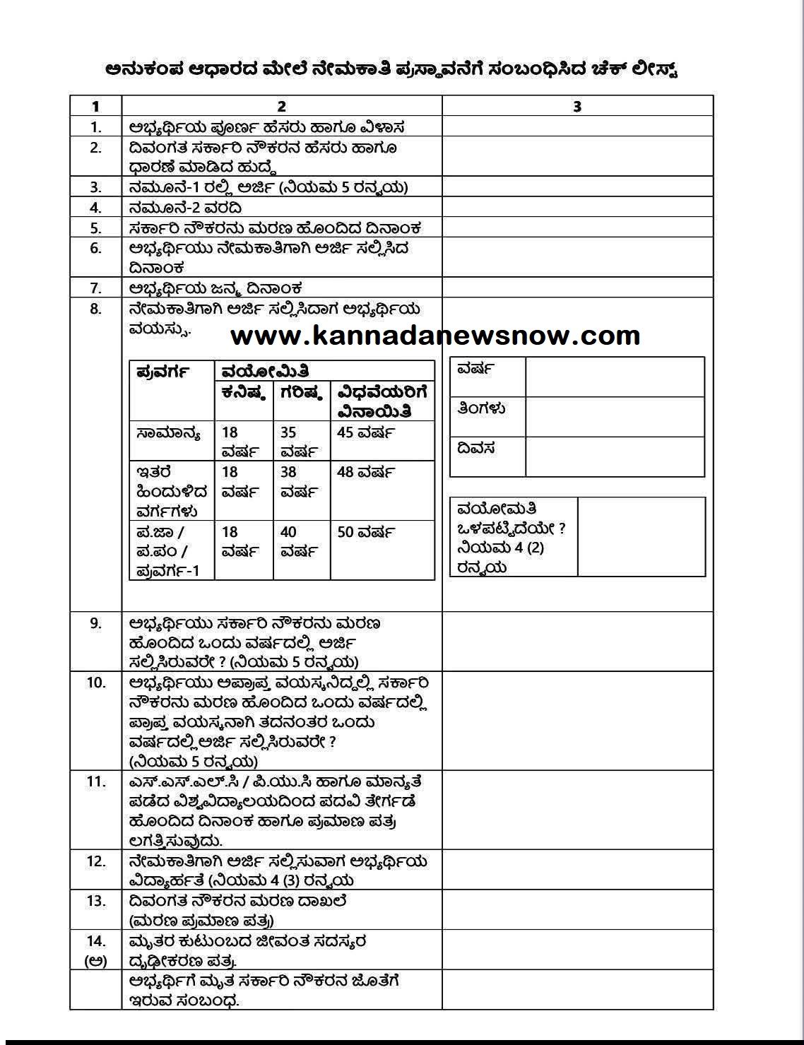 ಹೀಗಿದೆ ಅನುಕಂಪದ ಆಧಾರದ ನೇಮಕಾತಿಗೆ ಸಲ್ಲಿಸಬೇಕಾದ ದಾಖಲೆಯ ಚೆಕ್ ಲೀಸ್ಟ್