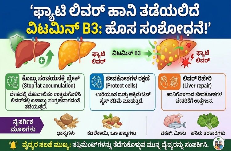 ನಮ್ಮ ಲಿವರ್‌ನಲ್ಲಿ ಅತಿಯಾದ ಕೊಬ್ಬು ಸಂಗ್ರಹವಾದಾಗ ಅದು ‘ಲಿವರ್ ಸಿರೋಸಿಸ್’ ನಂತಹ ಗಂಭೀರ ಕಾಯಿಲೆಗಳಿಗೆ ದಾರಿ ಮಾಡಿಕೊಡುತ್ತದೆ. ಇದು ಮುಂದೆ ಲಿವರ್ ವೈಫಲ್ಯಕ್ಕೂ ಕಾರಣವಾಗಬಹುದು. ಸದ್ಯಕ್ಕೆ ಇದಕ್ಕೆ ನಿರ್ದಿಷ್ಟ ಔಷಧಗಳಿಗಿಂತ ಹೆಚ್ಚಾಗಿ ಜೀವನಶೈಲಿ ಬದಲಾವಣೆಯೇ ಪ್ರಮುಖ ಚಿಕಿತ್ಸೆಯಾಗಿತ್ತು. ಈಗ ವಿಟಮಿನ್ ಬಿ3 ಒಂದು ಆಶಾದಾಯಕ ಬೆಳವಣಿಗೆಯಾಗಿ ಹೊರಹೊಮ್ಮಿದೆ.