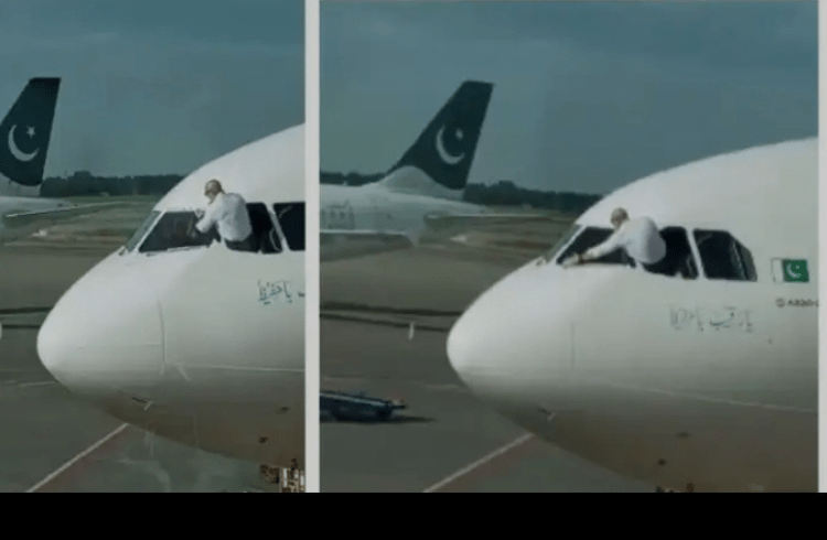 Watch video:’ಟೇಕ್ ಆಫ್’ ಆಗುವ ಕೆಲವೇ ಕ್ಷಣಗಳ ಮೊದಲು ವಿಮಾನದ ‘ವಿಂಡ್ ಸ್ಕ್ರೀನ್’ ಸ್ವಚ್ಛಗೊಳಿಸಿದ ಪಾಕ್ ಪೈಲಟ್
