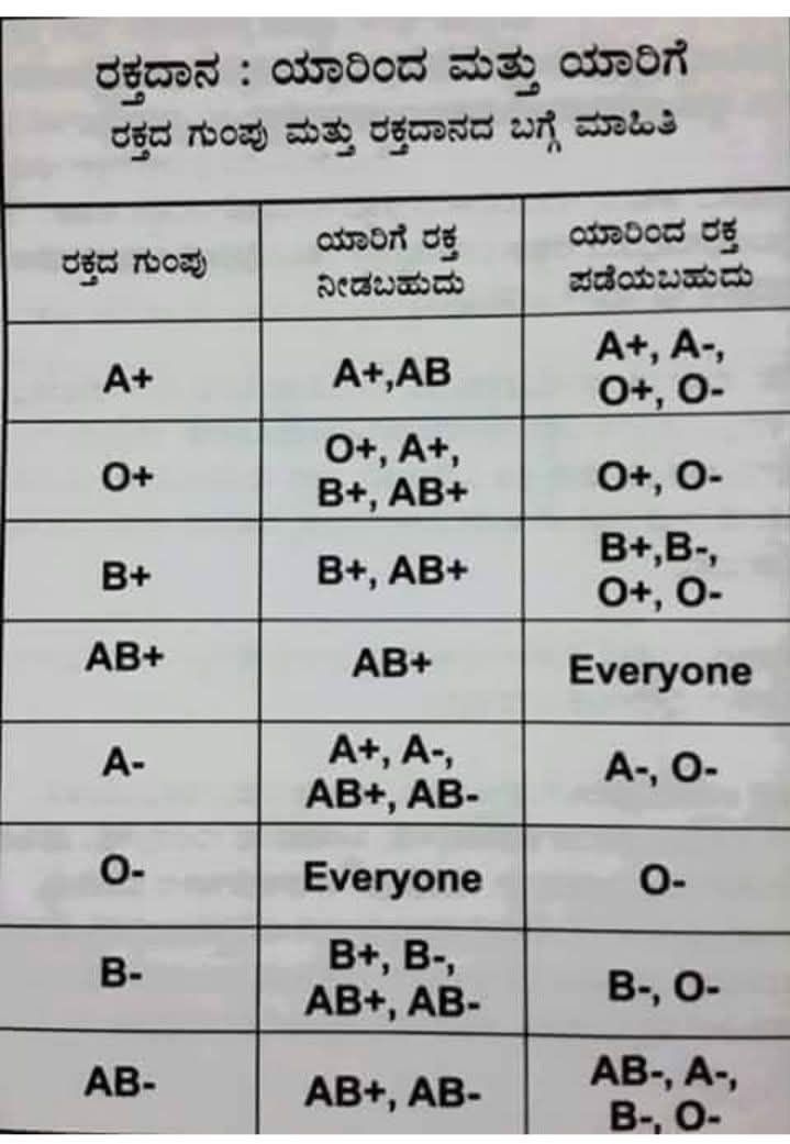 ಗಮನಿಸಿ: ರಕ್ತದಾನ ಮಾಡುವ ಮುನ್ನ ಅಧಿಕೃತ ರಕ್ತನಿಧಿ ಕೇಂದ್ರಗಳಲ್ಲಿ ವೈದ್ಯಕೀಯ ತಪಾಸಣೆ ಮಾಡಿಸಿಕೊಳ್ಳುವುದು ಕಡ್ಡಾಯ. ನಿಮ್ಮ ಒಂದು ಯುನಿಟ್ ರಕ್ತ ಮೂವರ ಜೀವ ಉಳಿಸಬಲ್ಲದು.