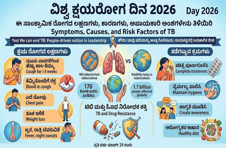Home » ವಿಶ್ವ ಕ್ಷಯರೋಗ ದಿನ 2026 : ಈ ಸಾಂಕ್ರಾಮಿಕ ರೋಗದ ಲಕ್ಷಣಗಳು, ಕಾರಣಗಳು, ಅಪಾಯಕಾರಿ ಅಂಶಗಳೇನು ತಿಳಿಯಿರಿ | World Tuberculosis Day